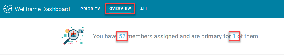 When you Navigate to the Overview Page, it will display, at the top, how many members you are assigned, and of those members, how many you are the Primary for.