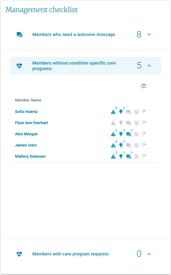 - Once you message a member, add a “condition-based” Care Program, or approve/decline a Care Program request, the member will be removed from the respective section.
