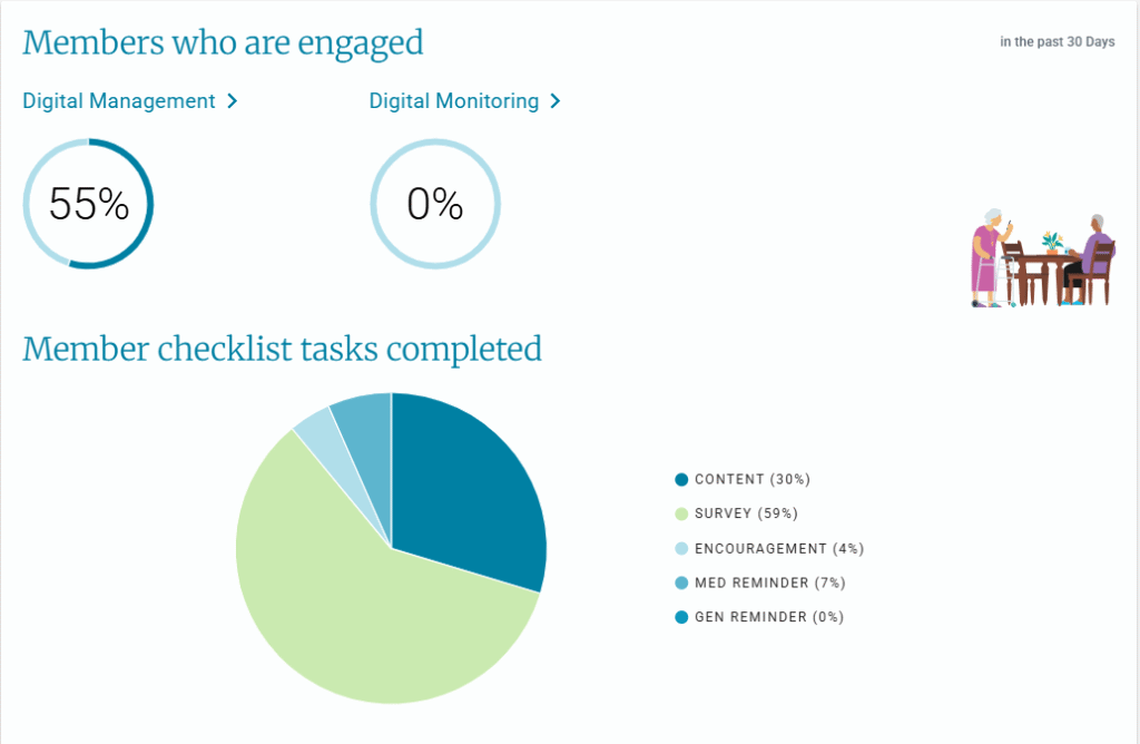 This view is a snap shot of the % of your active member population and which member state they are currently in (Digital Management or Digital Monitoring).