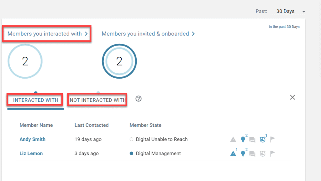 Members you interacted with – All members who are currently assigned to you today, that you have interacted with in the time frame selected.