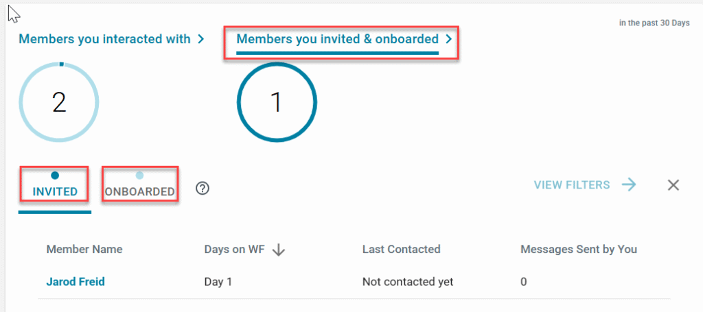 Members you invited/onboarded: This count includes any members you invited and that have completed onboarding. These members may or may not be assigned to you currently.